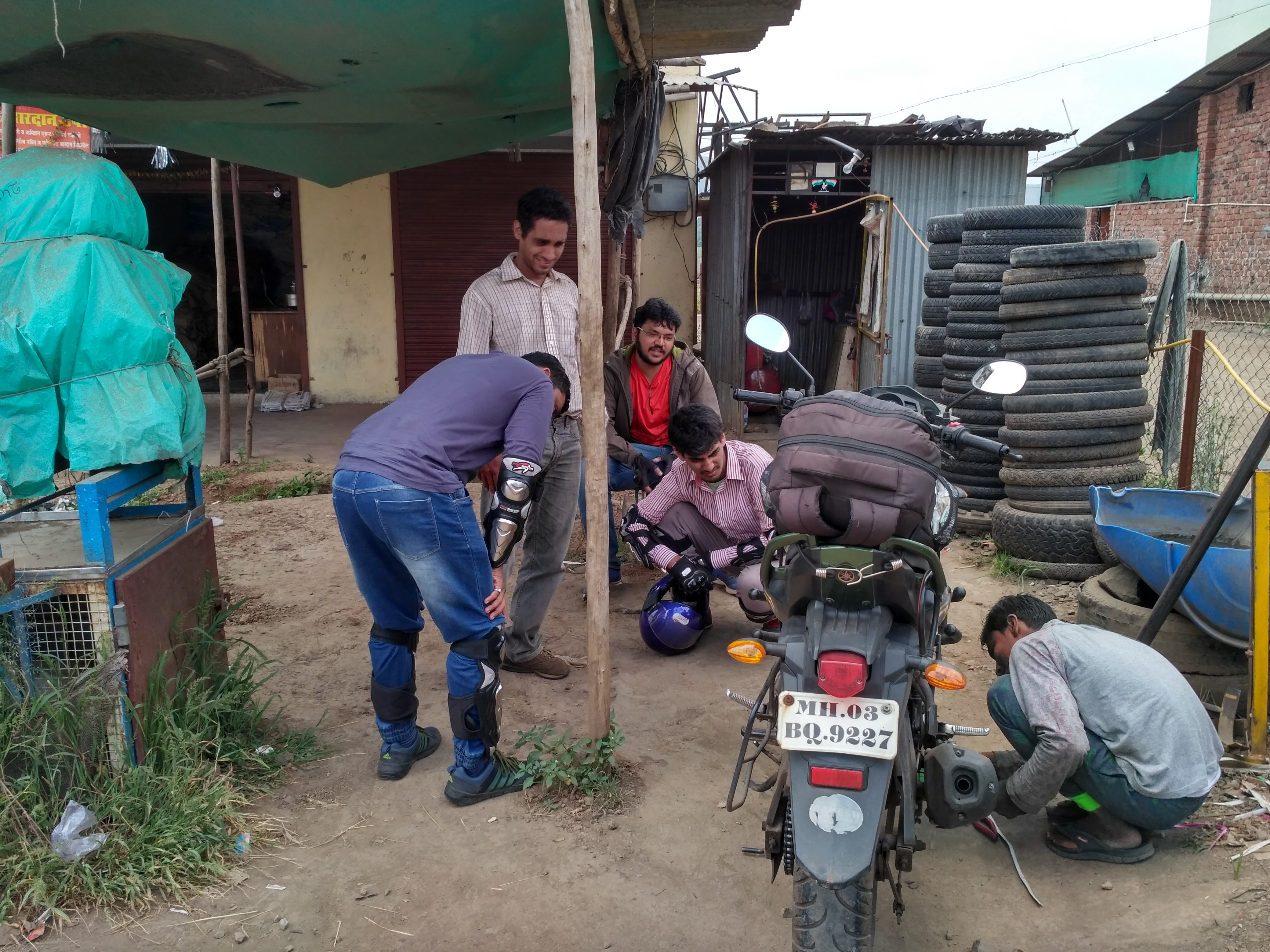 Last day of our trip, we woke up easy by 7am and left by 10am. At the petrol pump I was explaining to Devendra how to keep bikes in a good state during tours when we found his FZ-S’ dip stick showed no oil !!! We decided to move towards Pune where we would get the oil. Near Shivare while we enjoyed another session of McDonald’s, Devendra’s bike too had its fill of Engine Oil, The old oil – black in color drained giving way for the new. FZ-S was now more confident and peppy as DevD acknowledged. While entered Pune by-pass, Rains showed us who was the man of the trip. Thundering it came down while we awaited under a bridge to let it pass. Drenched, we decided to move ahead slowly as the downpour turned into a trickle. At Panvel we decided to have another go at our last meal of the trip at Shri Dutt Snacks. With indian burgers (Vada pav) and Tea we head into ever trickling rain back to the shelter of dry homes.