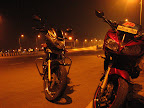 Good deeds done, We were on Eastern Express highway then pulling off from the highway towards Chembur that led us towards Vashi. As soon as Chembur had gone past us, the road became clear and our bikes started pulling us faster (thanks to the accelarator). We were moving around 70+ kmph on the Mankhurd-Vashi bridge. With trucks, cars and other vehicles, we all enjoyed the feeling of power under our seats. Ankush’s baby, Bajaj Pulsar delivered a displacement of 180 cc, while that of Vj’s TVS Apache and mine displaced 150. Enough to make u feel the power