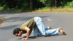 We decided to even clean our bike, so filled a plastic bag with the water at the hand pump and chilled the black seat of the bike and the engine. Yet again on the bike, we moved ahead checking which waterfall should we spend some time and have a clean shower! We went pass through 3 falls, until we spotted one just on the road, which had no one. And the fall came from atleast 30 feet above the road. We drenched ourselves in the cold water and mounted ourselves us again for the trip back to Mumbai. We left the ghat around 2 with Manas riding the bike and me as a pillion.